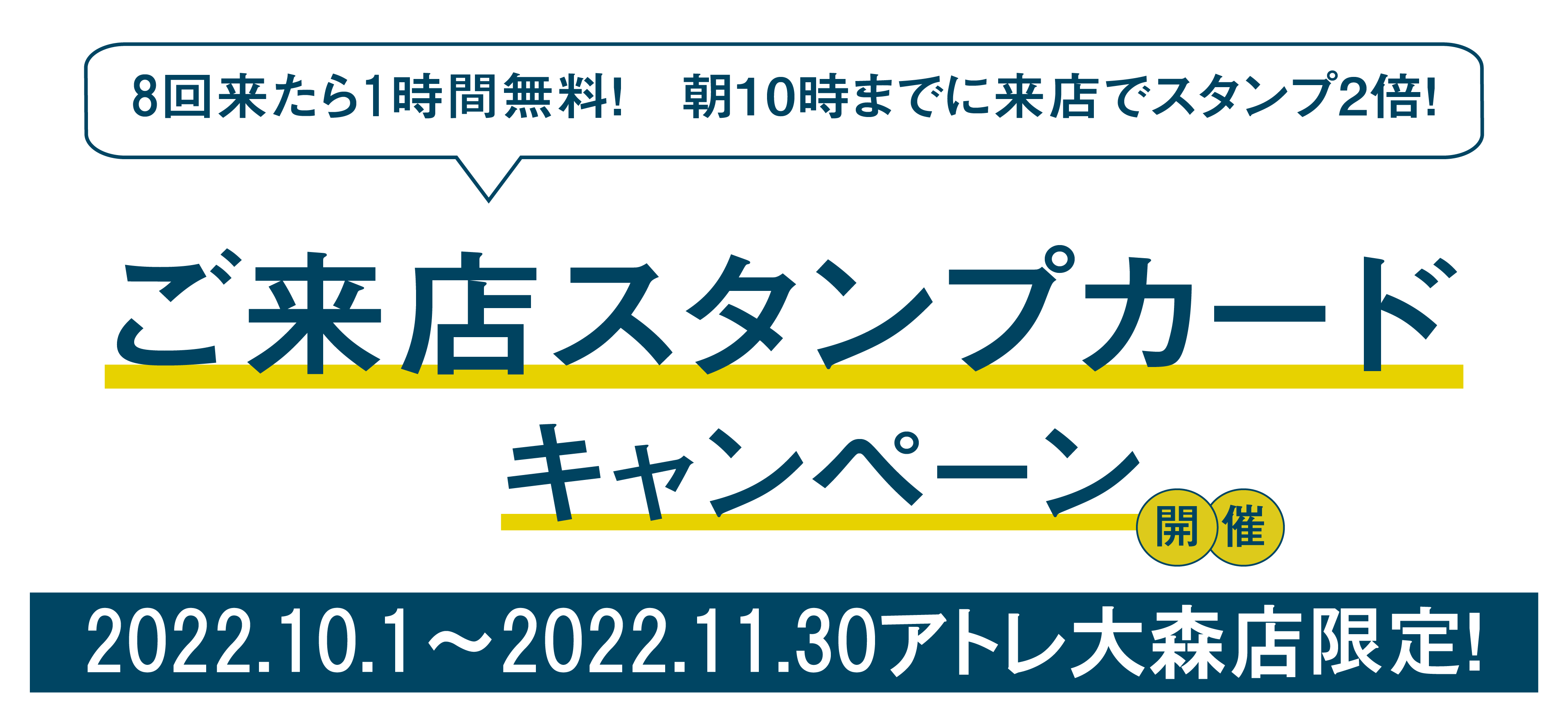 ・HAKADORUアトレ大森店限定キャンペーンとなります。他店のスタンプの押印、1時間無料クーポンの利用は不可となります。